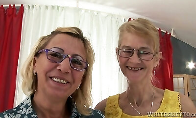 Blonde grannies Milli and Beata finger and plaything each other's shaved cootchies