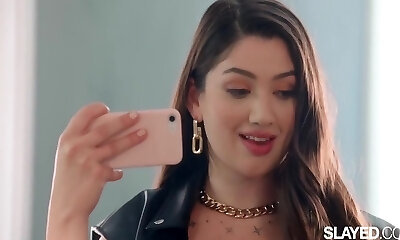 Exciting threesome girl-girl video featuring concupiscent babe Kenna James